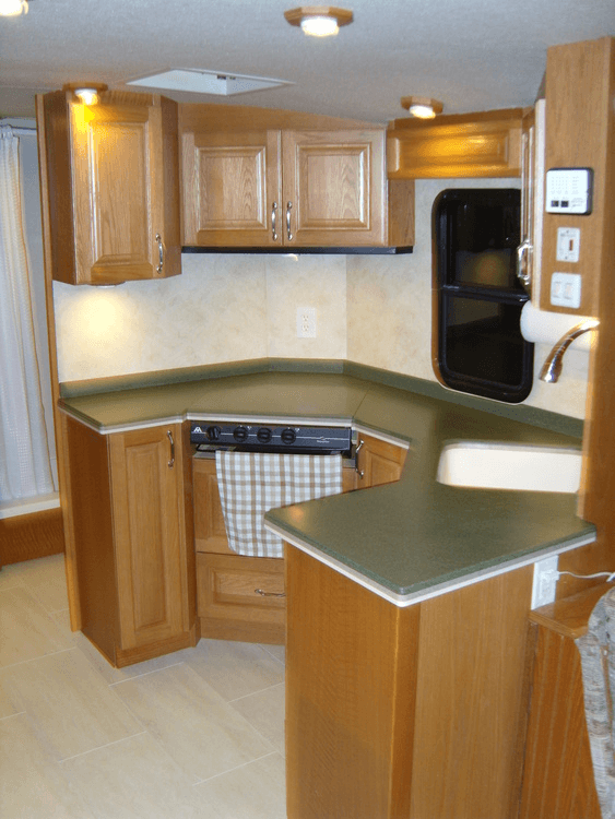 We had a short side aisle at the bedroom.  We had that layout to have a large bedroom closet facing forward, and a refrigerator that faced forward not sideways.  Along the wall, my wife wanted a kitchen and bathroom, which meant you had to have a side aisle.