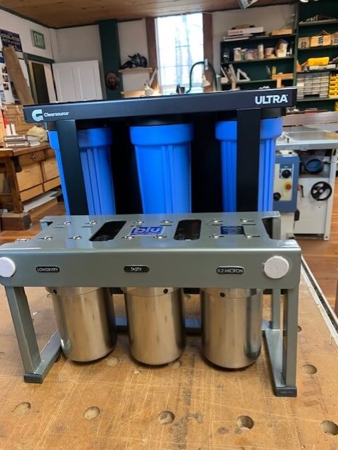 The other recommended 3-stage filter is made by Clearsource and it is available directly from Clearsource itself, from several RV supply houses, and from Amazon. It uses 10” long filters so it is significantly larger, taller, and heavier, optimized for longer filter life, and higher water flow rates, and claims superior filtration technology than BluTec offers.