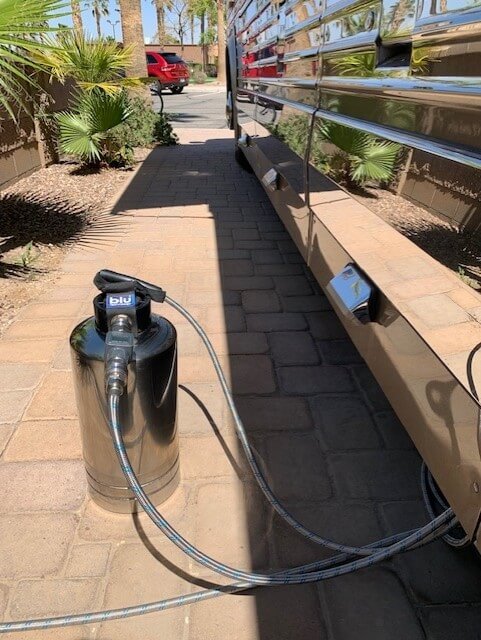 If you have room and don’t mind the extra weight you might like using Clearsource all the time. Just remember that it will take three or maybe even four times as much storage space in your RV to store the Clearsource components than what it will take to store the BluTec components. Not only are the filters and softener larger to store, the Clearsource hose set also takes significantly more space to store than the BluTec braided stainless steel hoses. Enjoy!