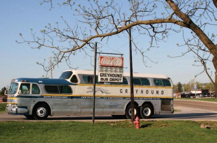 Shown here is a restored Scenicruiser belonging to Tom McNally while on a photo shoot along Route 66.