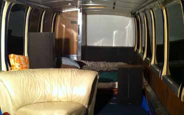 Two hours after I bought my bus, I arrived in Canoga Park, CA, and pressure-washed it inside and out. Within 12 hours, after it thoroughly dried, I put my TempurPedic mattress in the back, hung a rod between the wall of an existing hole in the bathroom and the port side wall to hang my clothes, threw some fabric around, and some carpet and throw rugs, chairs, tables, stereo and within twenty-four hours was on my way to Malibu.
