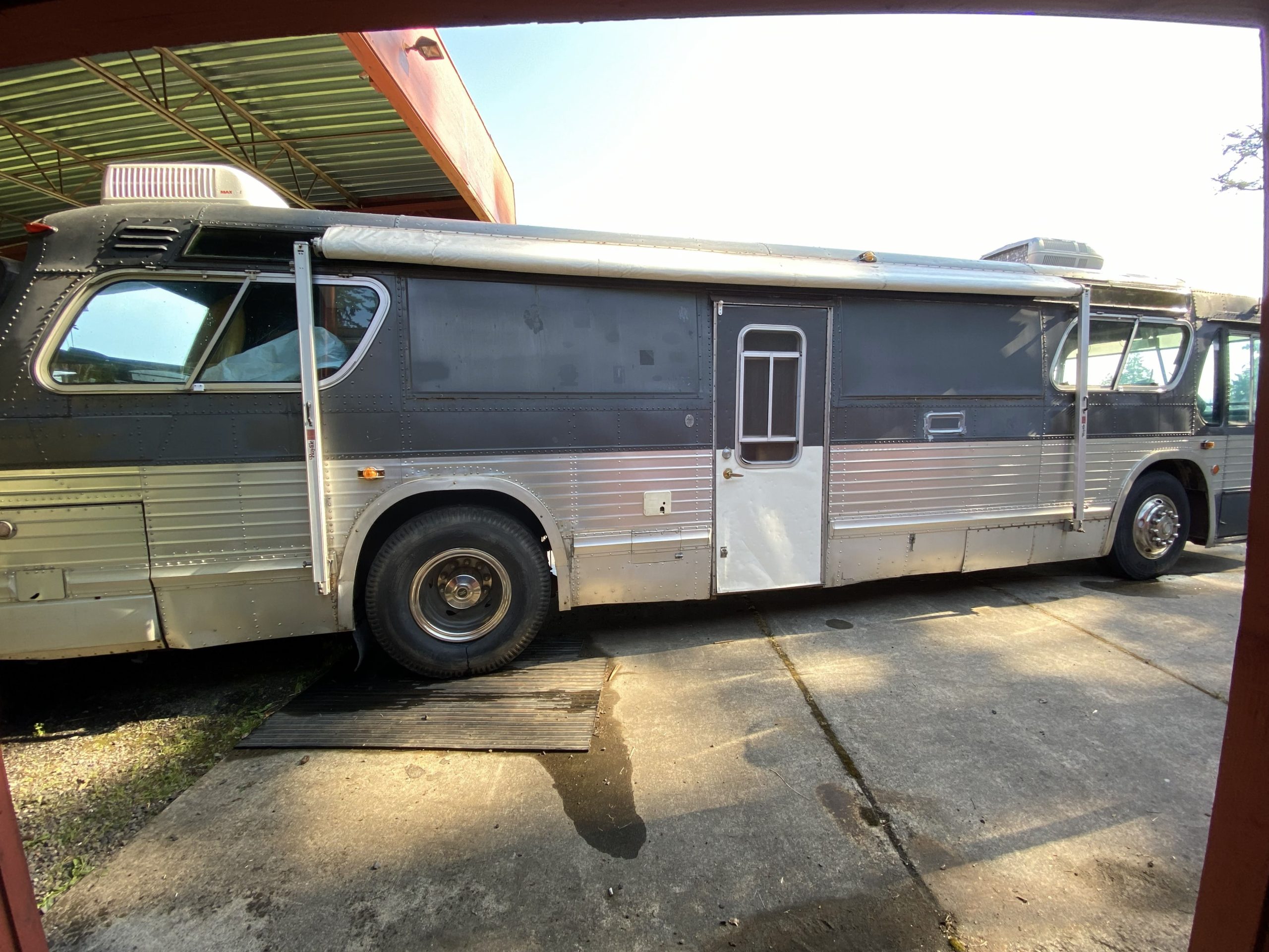 This bus was built on October 1971 for the City of Worchester MA - #413. It was converted into a motorhome by Coachman the year it was purchased. The front folding door was sealed over and the RV door was installed in the middle by the 2nd owners.