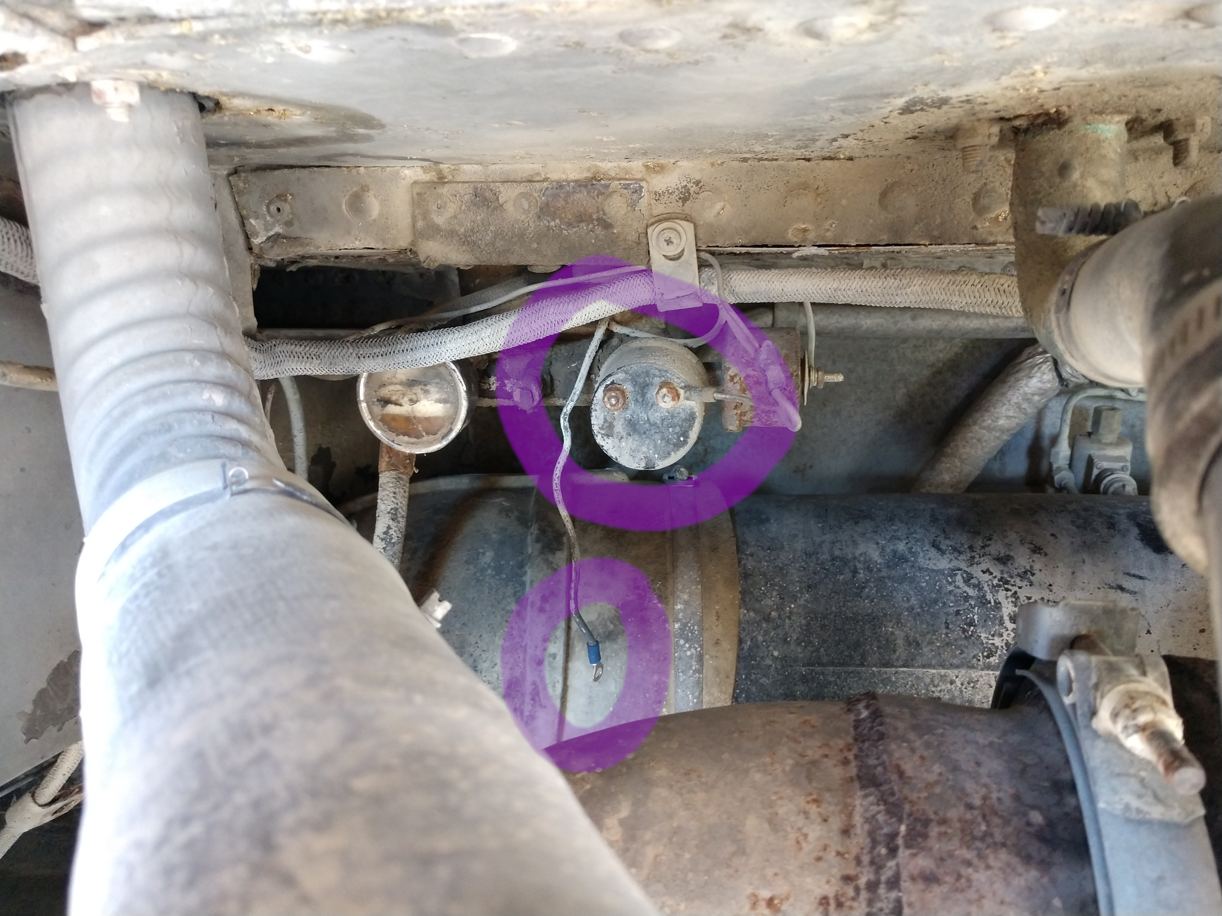 Open the floor down the back, above the transmission. Identify the coach heater pipes, passing nearby, heading towards the tunnel. Have an assistant get comfortable with shooting that pipe with an infrared gun.